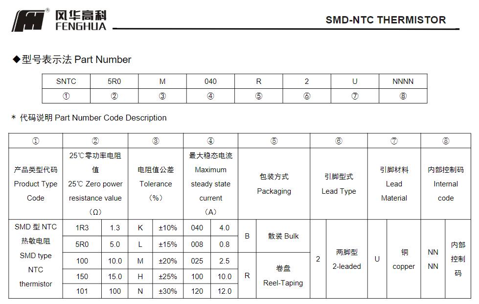 風華高科NTC貼片熱敏電阻命名規(guī)則: