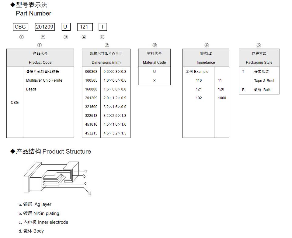 風華高科疊層片式鐵氧體磁珠(CBG)命名規則: