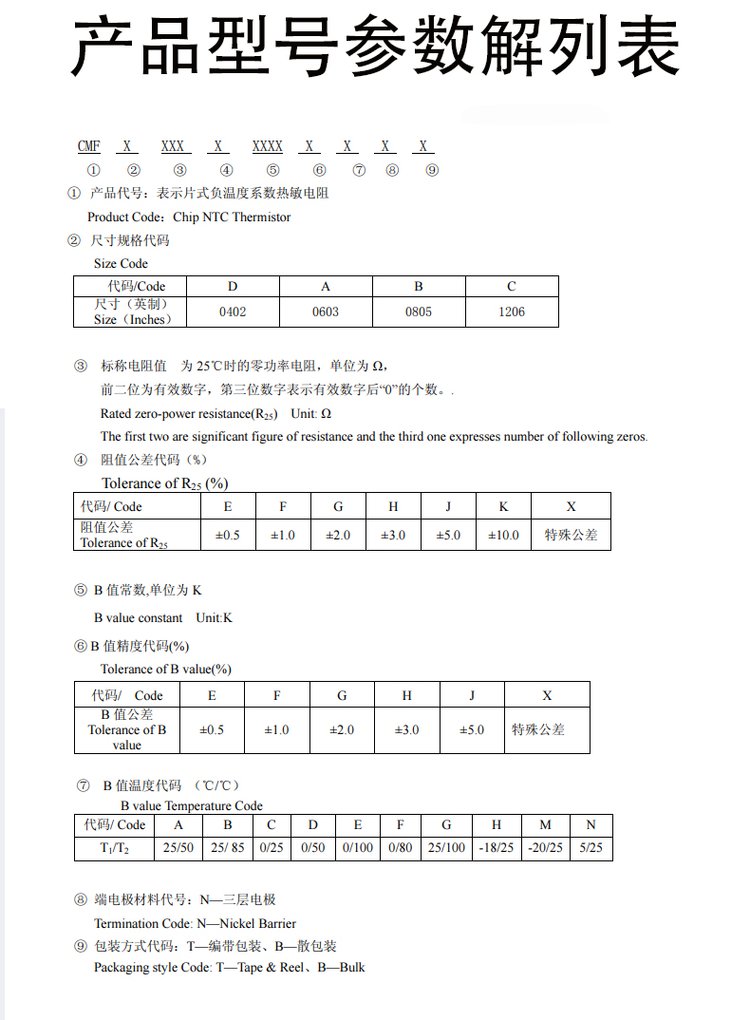 FH/風華貼片NTC PTC熱敏電阻器-CMF系列: