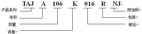 第一部分TAJ:AVX貼片鉭電容的系列號(hào),TAJ系列鉭電容中文俗稱(chēng)標(biāo)準(zhǔn)品系列,AVX鉭電容共有TAJ,TPS,TPM,TAP,TBC等系列。
