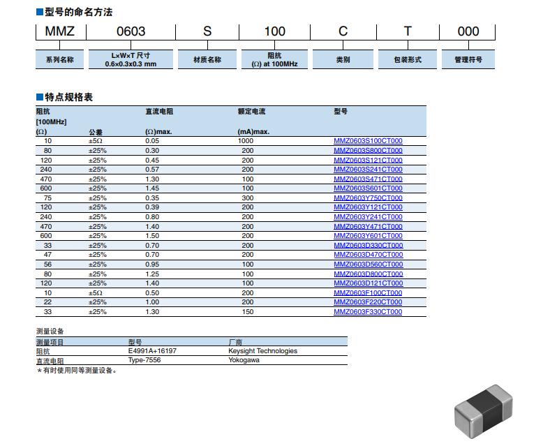 TDK磁珠型號:MMZ 0603 S 100 C T