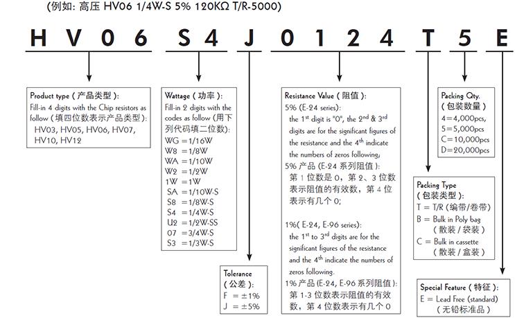 產品系列:厚聲高壓厚膜電阻HV系列