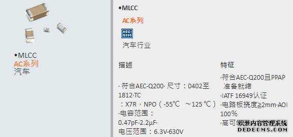 國巨汽車貼片電容:Yageo已向市場推出了一系列新的具有汽車標準的MLCC和R Chip組件,這些組件可用于當前設計,并可作為未來趨勢的先驅。