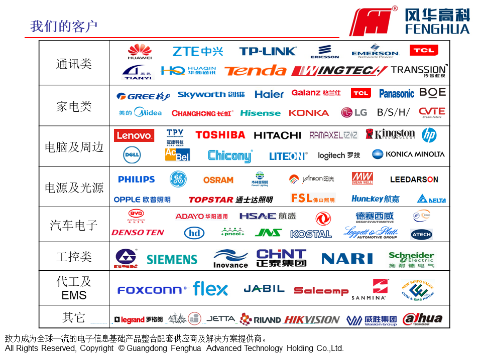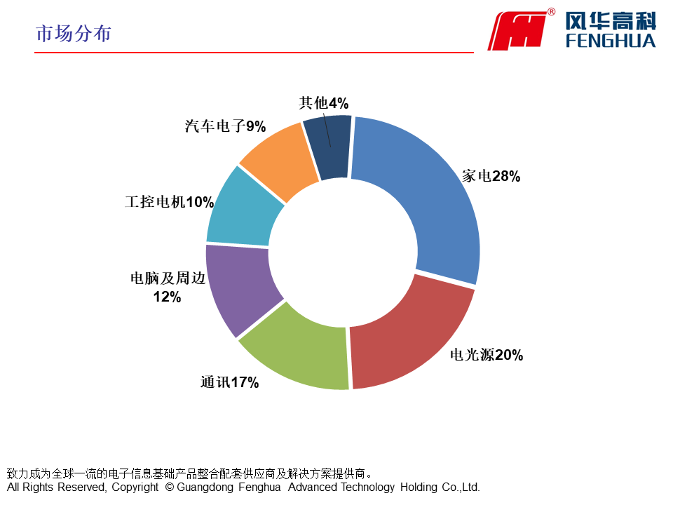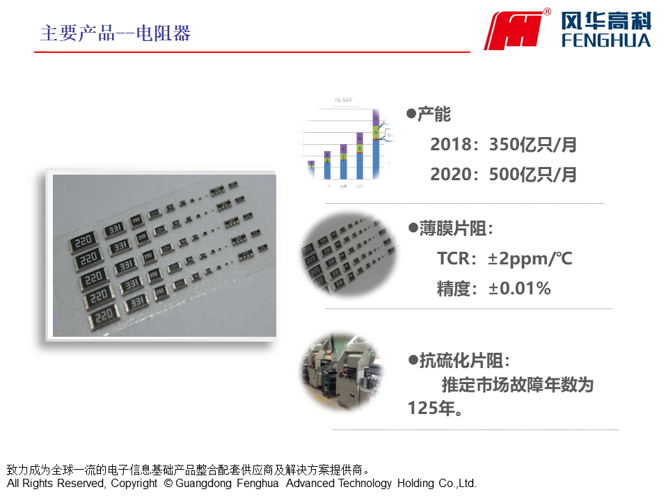 風(fēng)華高科具有完整與成熟的產(chǎn)品鏈,具備為通訊類、消費(fèi)類、計(jì)算機(jī)類、汽車電子類、照明電器類等電子整機(jī)整合配套供貨的大規(guī)模生產(chǎn)能力。