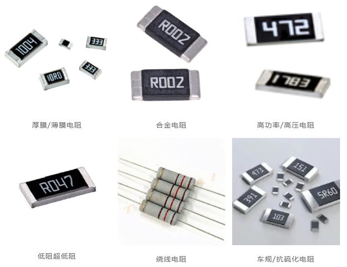 貼片電阻分類:貼片厚膜電阻/薄膜電阻、合金電阻、高功率/高壓電阻、車規電阻/抗硫化電阻、低阻/超低阻、寬電極電阻、排阻 插件電阻: 碳膜電阻、氧化金屬膜電阻、線繞電阻、水泥電阻、網絡排阻、MELF圓柱金屬電阻 貼片電阻主要參數: 1.額定功率(額定功率通常有1/8W、1/4W、1/16W、3/4W、1W、2W、 3W、5W、10W )2.電壓系數(對應于額定
